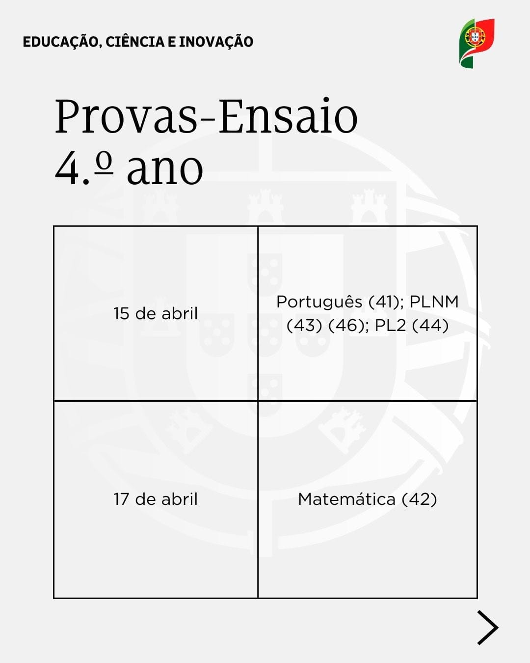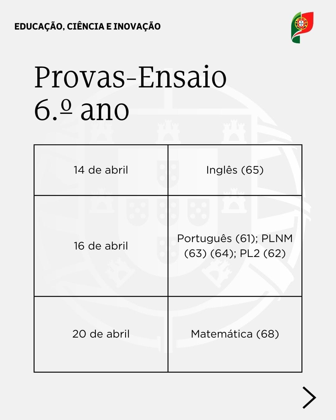 O MECI informou as escolas que, devido à situação de calamidade que recentemente atingiu várias zonas do país e causou danos nas infraestruturas escolares e nas comunicações e rede elétrica, que obrigou a reorganização temporária dos espaços escolares com elevado impacto na vida dos alunos, das famílias, dos profissionais de Educação e das comunidades, adia a realização de Provas-Ensaio, inicialmente previstas para o mês de fevereiro, para o mês de abril. As datas para a realização das provas ModA e das Provas Finais do Ensino Básico mantêm-se inalteradas.