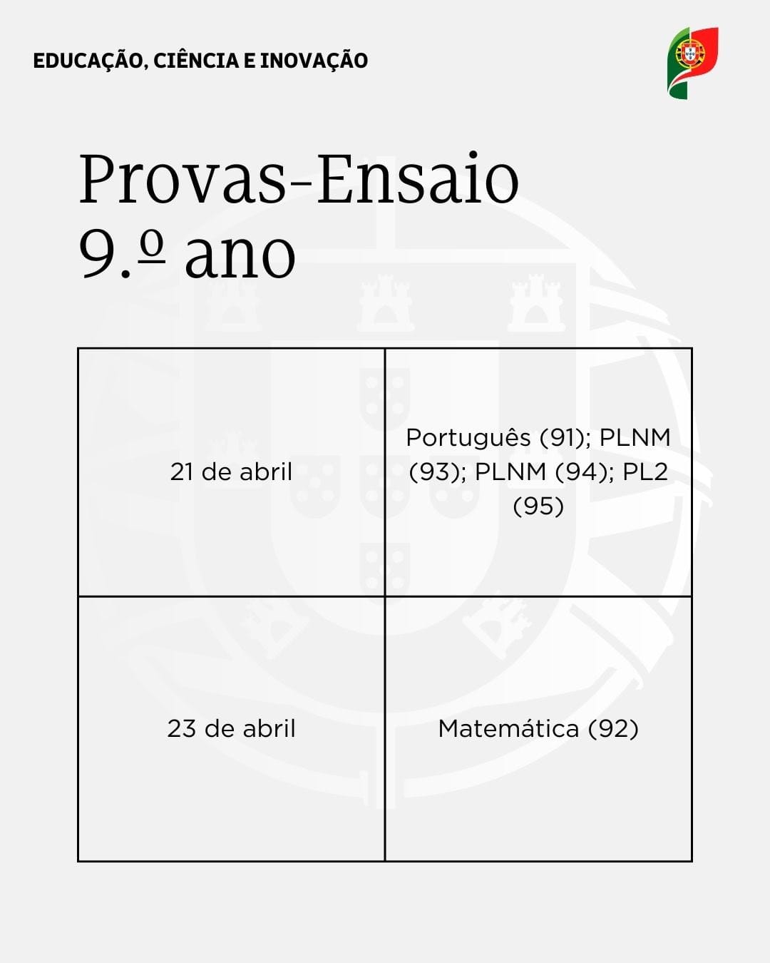 Assim, as provas-ensaio se realizam entre 14 e 23 de abril, de acordo com a seguinte calendarização: